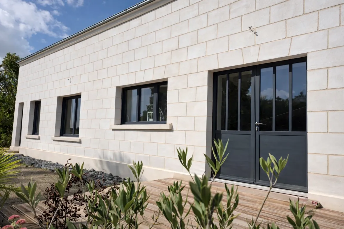 - Tuffeau : enduit clair sculpté à la main, typique de l’Anjou, pour une façade lumineuse et locale.